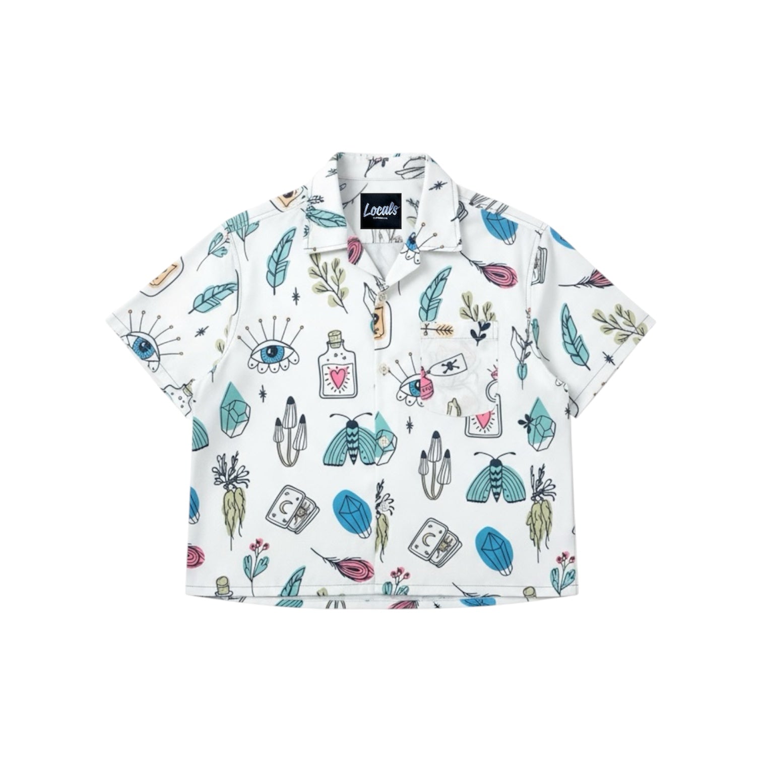 Printed with random stuff that somehow makes sense together eyes, feathers, potions, all that good energy. Soft, airy, and perfect for your “I didn’t try but still ate” outfits.