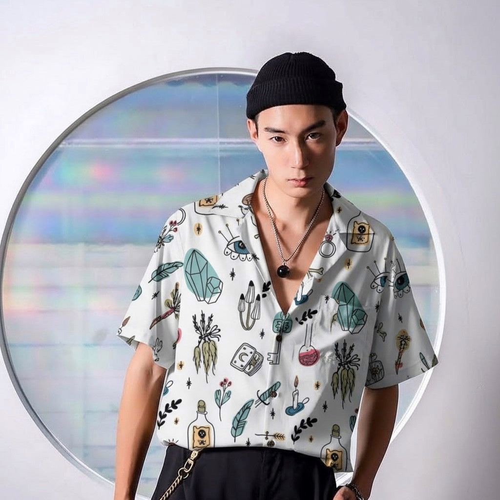 Mystic print Hugo Polo, Short Sleeves Cuban Style Polo. Made of Tencel Rayon blend fabric.